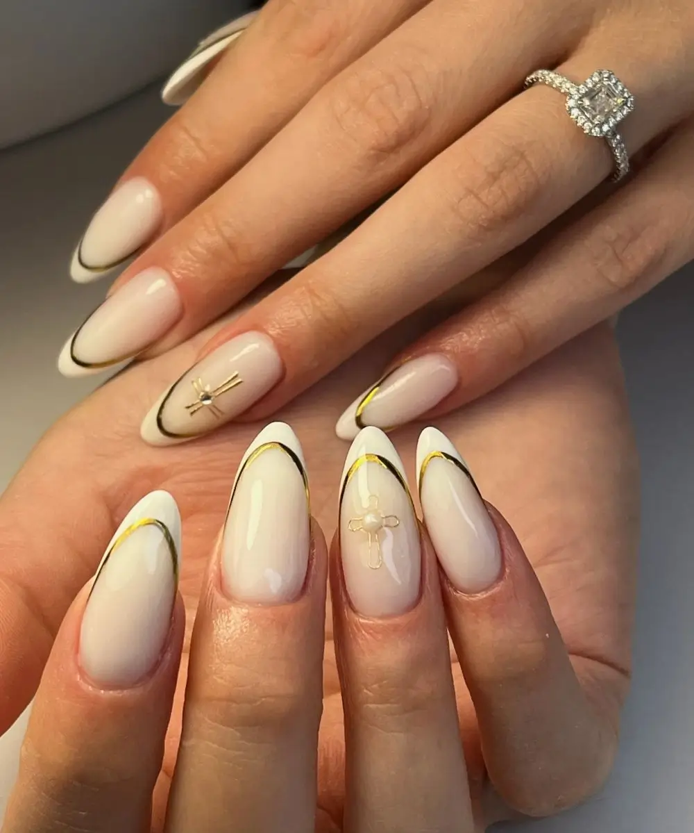 Arany csíkos francia milky white köröm