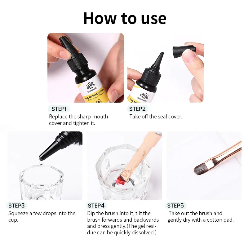Ecseteink a legfontosabb befektetéseink közé tartoznak. A Born Pretty speciálisan kifejlesztett tisztító folyadéka hatékonyan távolítja el a zselé, a polygel, a lakkok és a pigmentek maradványait, anélkül, hogy károsítaná az ecset szálait.